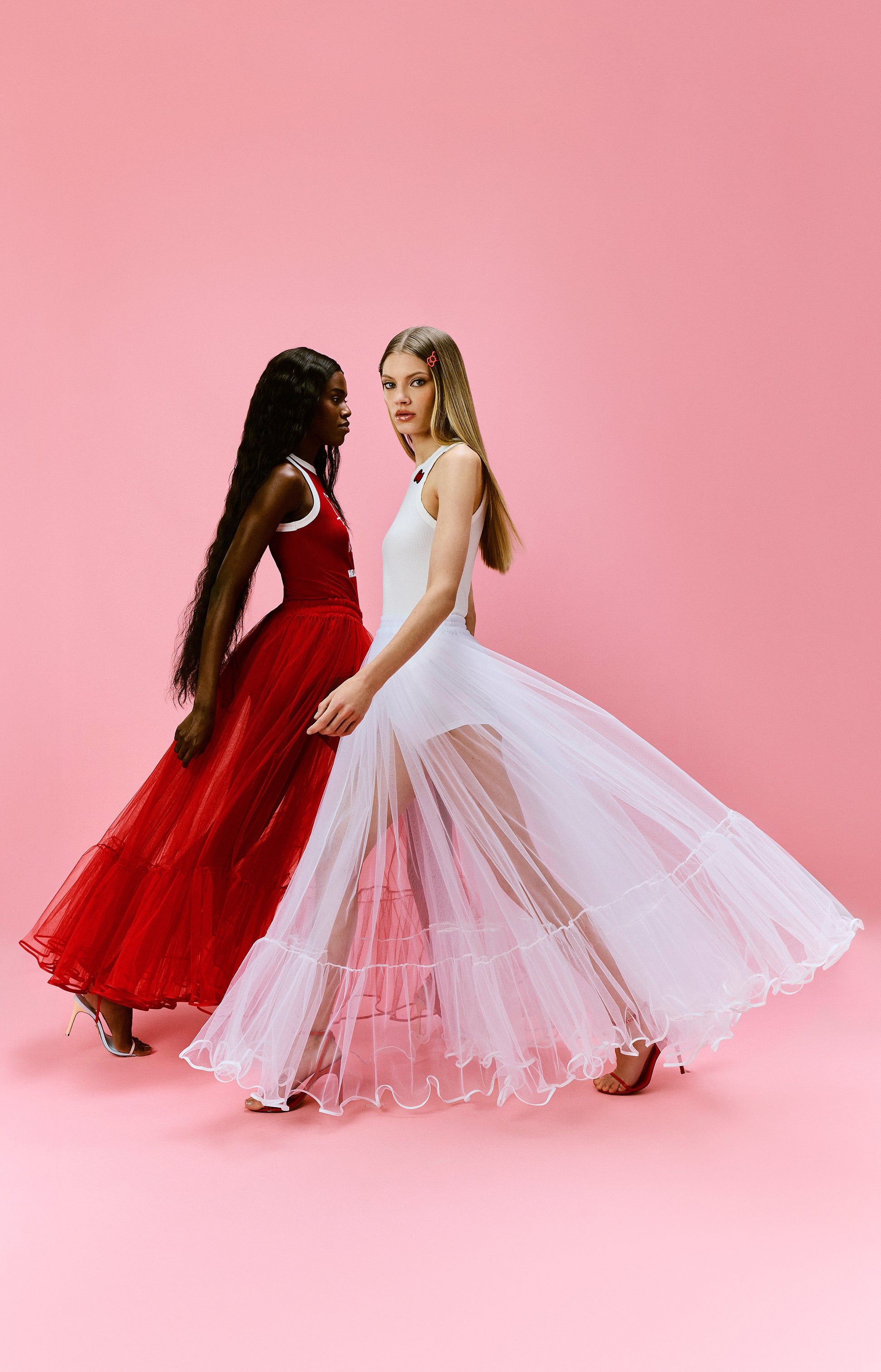 Saia longa com cós elástico e transparência, acompanha hotpants.